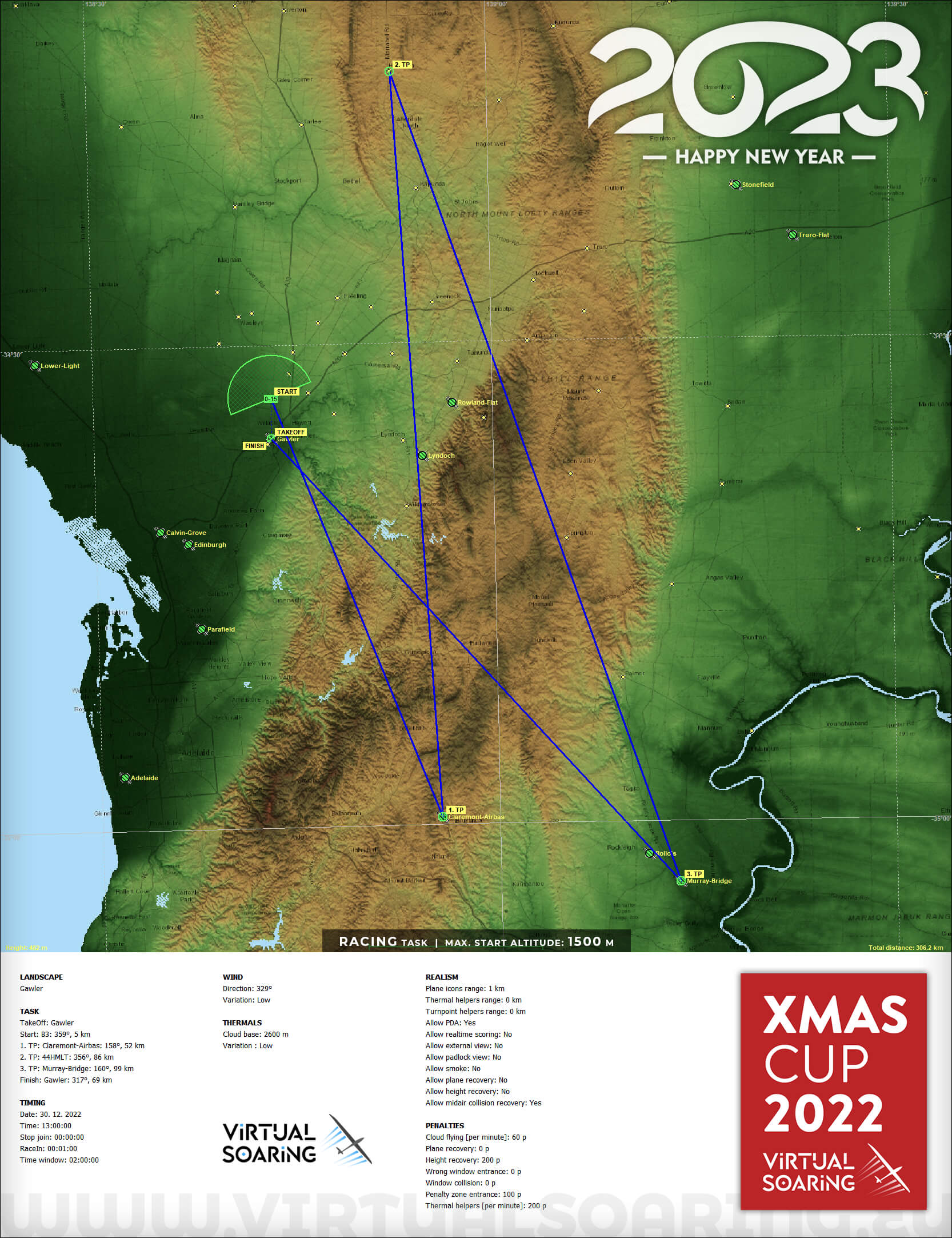 Létání v mracích je zakázáno! Směr kroužení ve stoupání určuje první kluzák ve stoupání. Pokud bude mít soutěžící pochyby o směru, dotáže se na chatu nebo Teamspeaku. Upozornění: jsou-li aktivní zakázané prostory - sledujte PDA po celou dobu letu! Lítejte BEZPEČNE a pro radost, hodně štěstí všem pilotům!